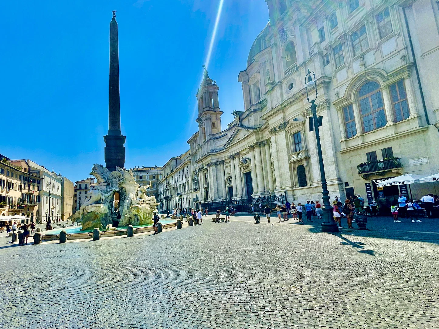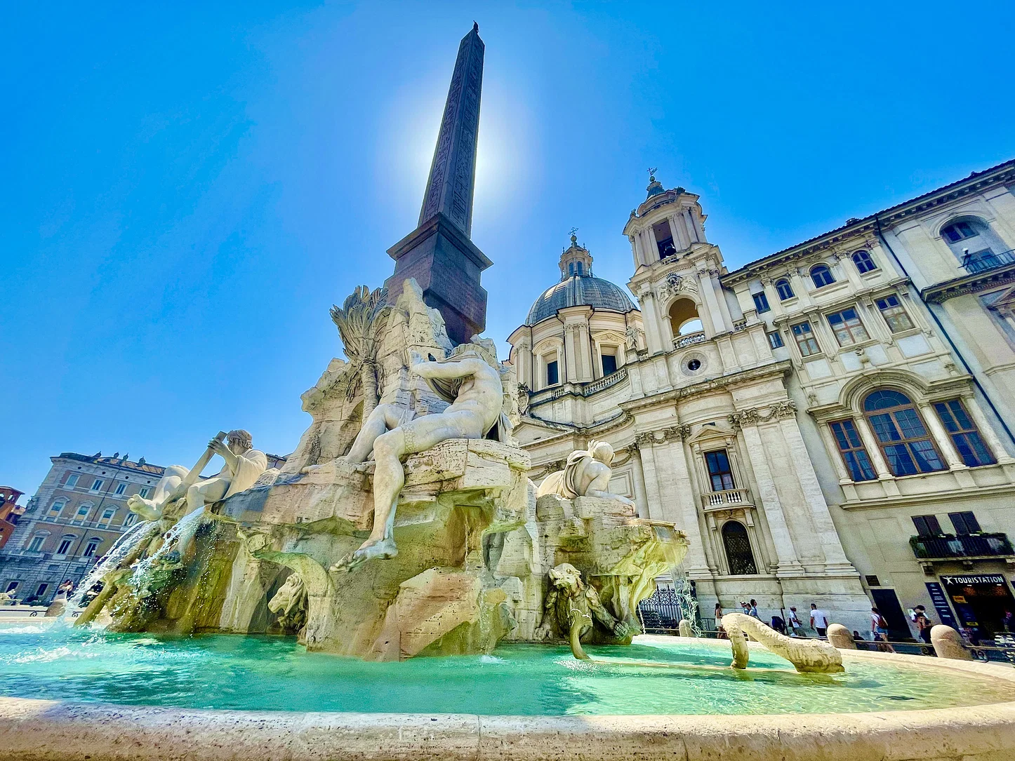 Facing the fountain is the Church of Sant’Agnese in Agone, designed by Borromini—Bernini’s greatest rival. The interplay between their architectural visions gives the square its unique energy and artistic tension.